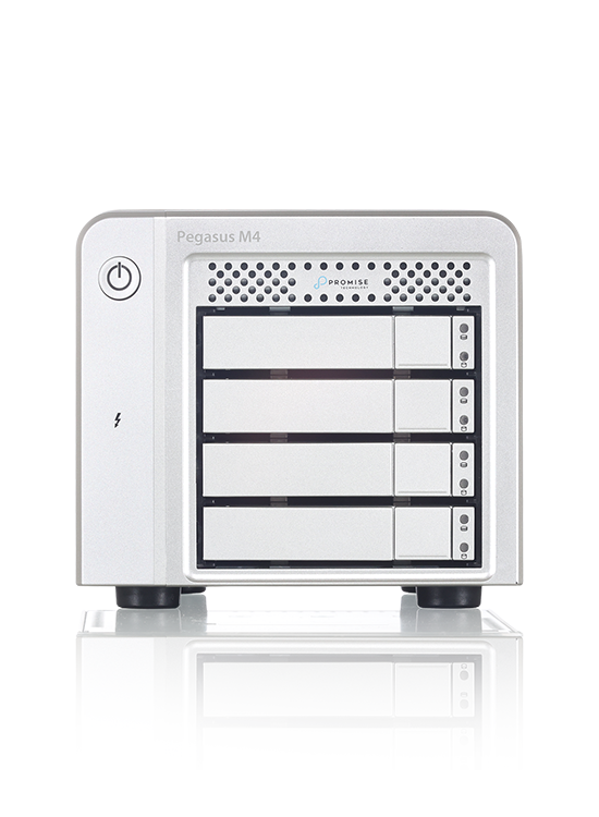 The Pegasus M4 combines the robust PromiseRAID engine – renowned for stability and high performance, with the high throughput of Thunderbolt™. Pegasus M4 is housed in a compact four-bay enclosure utilizing pre-installed enterprise-level high endurance SSD. The M4 is a perfect fit for on-the-go creative media professionals.